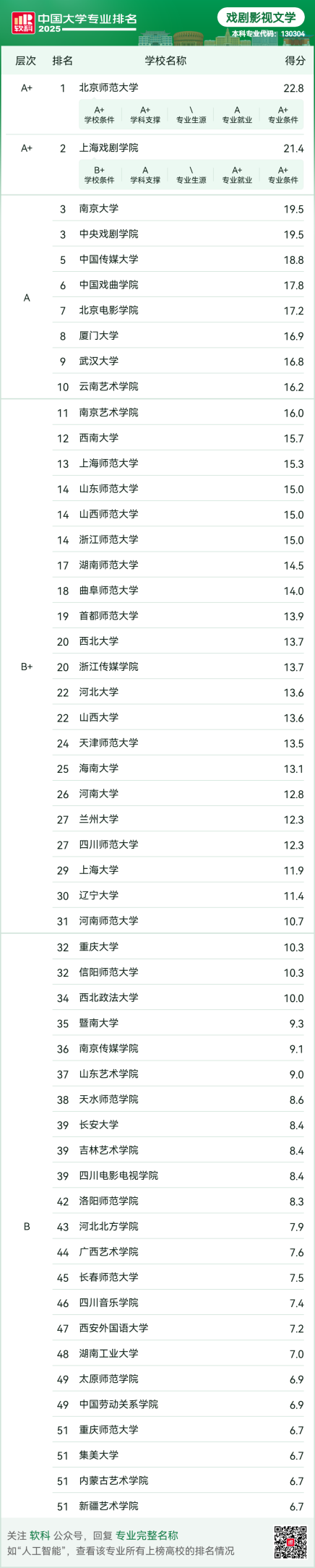 yl23455永利戏剧与影视文学专业在此次排名中获评层次“A”,全国位列第九名。